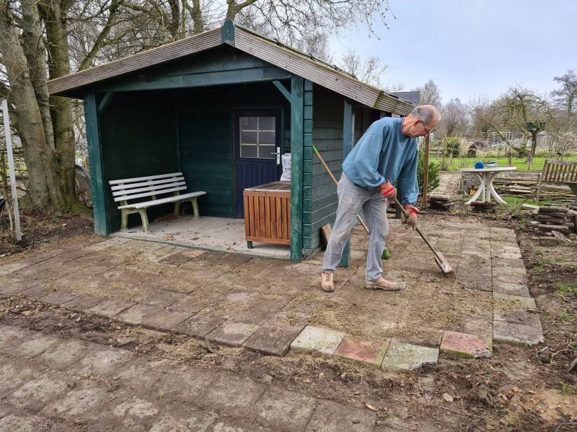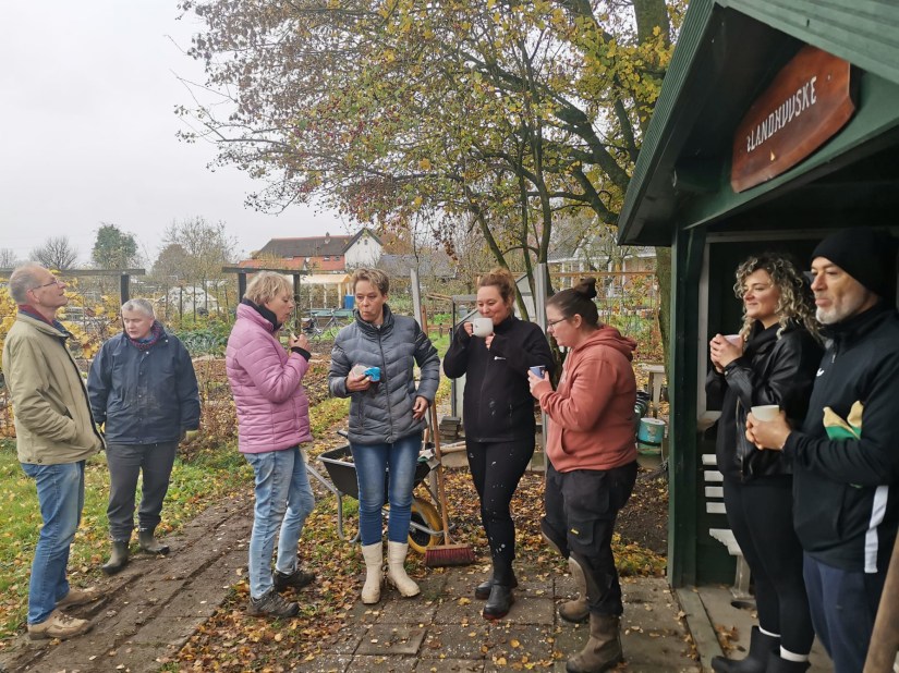 Tijdens de klusdagen, die altijd gezellig zijn, is er koffie, thee en koek.