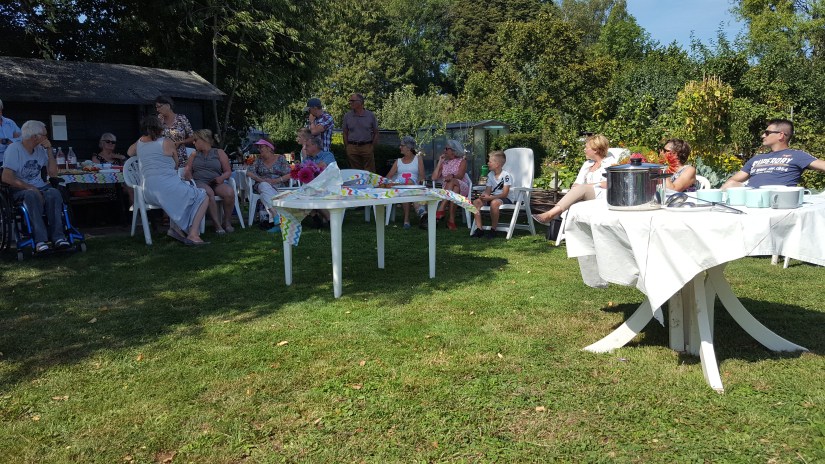 Elk jaar in augustus komen we samen voor het “oogstfeest”. Het is een gezellig samenzijn waarbij leden, die dat willen, een gerecht klaarmaken van de oogst uit eigen moestuin. Er zijn leden die met de meest fantastische gerechten komen. Maar ook iets eenvoudigs zoals pompoensoep (kan niet mislukken) wordt zeer gewaardeerd.
